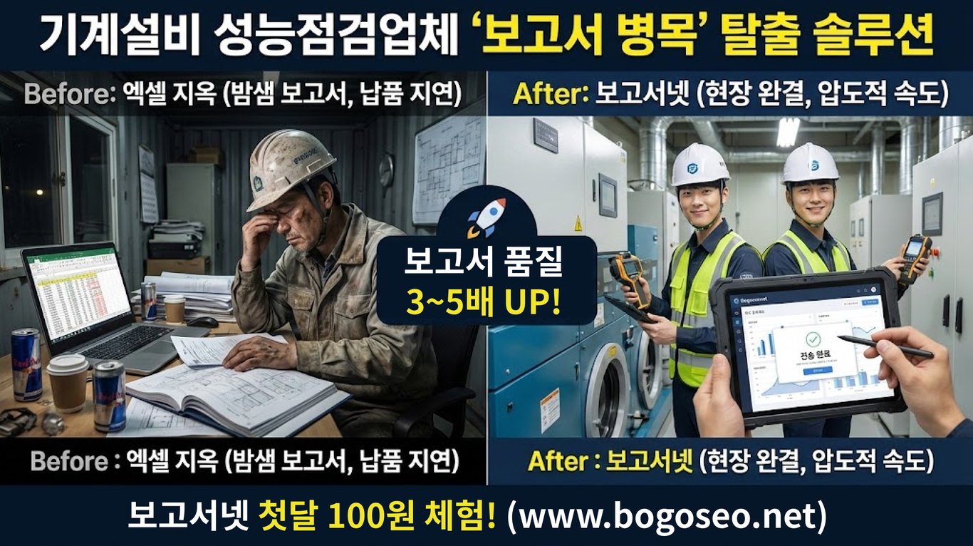 기계설비 성능점검업체 대표님, 그리고 팀장님. 연말과 연초에 현장 일정은 빡빡하고, 직원들은 지쳐갑니다. 가장 큰 병목은 어디서 발생하나요? 현장 점검은 어떻게든 쳐내는데, 사무실...