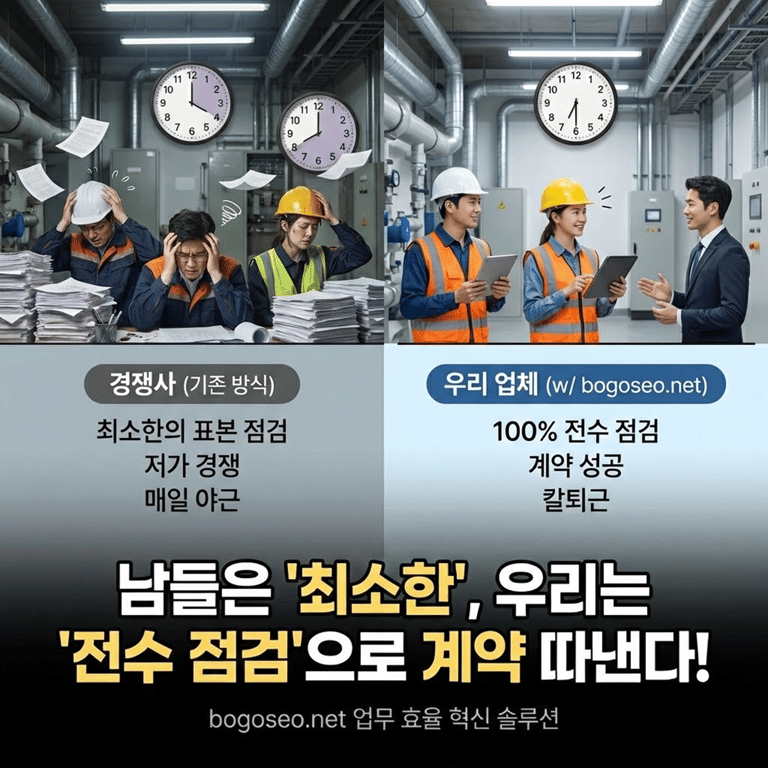 기계설비 성능점검 시장이 점차 성숙해지면서, 업체 간의 경쟁도 치열해지고 있습니다. 단순히 "법적 의무 사항이니 해야 합니다"라는 접근만으로는 계약을 따내기가 점점 어려워지고 있습...