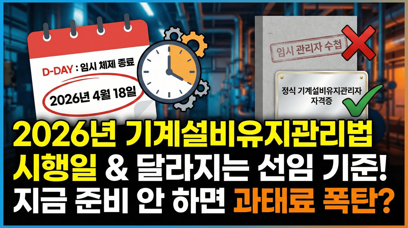 2026년을 앞두고 기계설비 현장의 분위기가 심상치 않습니다. "기계설비유지관리법 시행일이 정확히 언제인가요?" "지금 임시로 선임되어 있는데, 그때 가서 해고되는 건가요?" 많은...